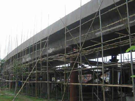 2)施工現(xiàn)場(chǎng)狹窄、擁擠,常受原有結(jié)構(gòu)的制約,應(yīng)合理安排工序。